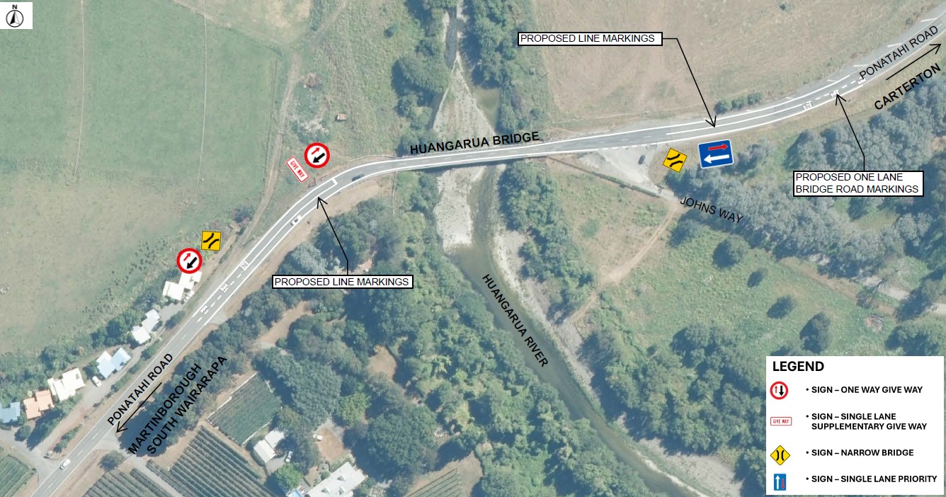 As part of our ongoing programme of works to improve road safety across the South Wairarapa District, we're planning to convert the existing two-lane Huangarua Bridge on Ponatahi Road into a one-lane bridge.